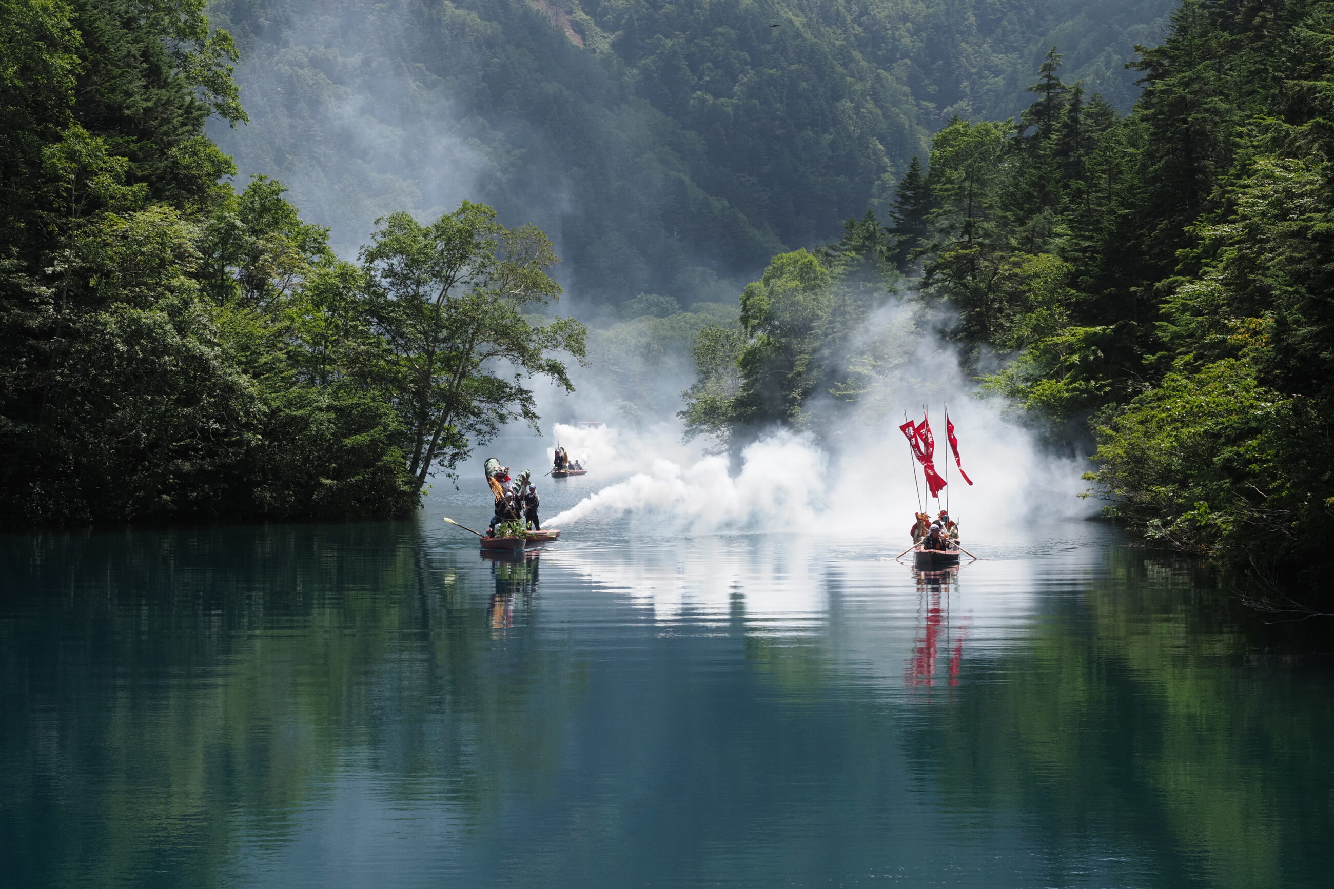 八月的第三个星期,"大蛇祭"在志贺高原举行。传说中,大沼池的水里住着一条巨蛇,在战国时期(1467-1568),巨蛇爱上了一位名叫黑姬的美丽公主。为了赢得她的爱,他将自己伪装成一个武士,但一旦被发现,黑姬的父亲就禁止这种关系,并试图欺骗巨蛇。让我们说,这个故事并不顺利......最后,大蛇摧毁了她父亲的城堡,黑姬投进了池塘。