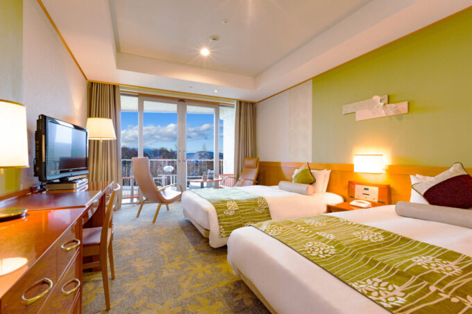 轻井泽王子大饭店宽敞而独特的居所位于度假村的高尔夫球场湖畔,以其别致的行政套房和双床房迎接世界各国的首席执行官和贵宾前来商务或休闲度假。宽敞的平面布局可与度假村南部更广阔的区域相媲美。这些房型的设计充分考虑到了舒适性,床单质量和设施都比度假村其他区域要好得多,让您尽情放松。