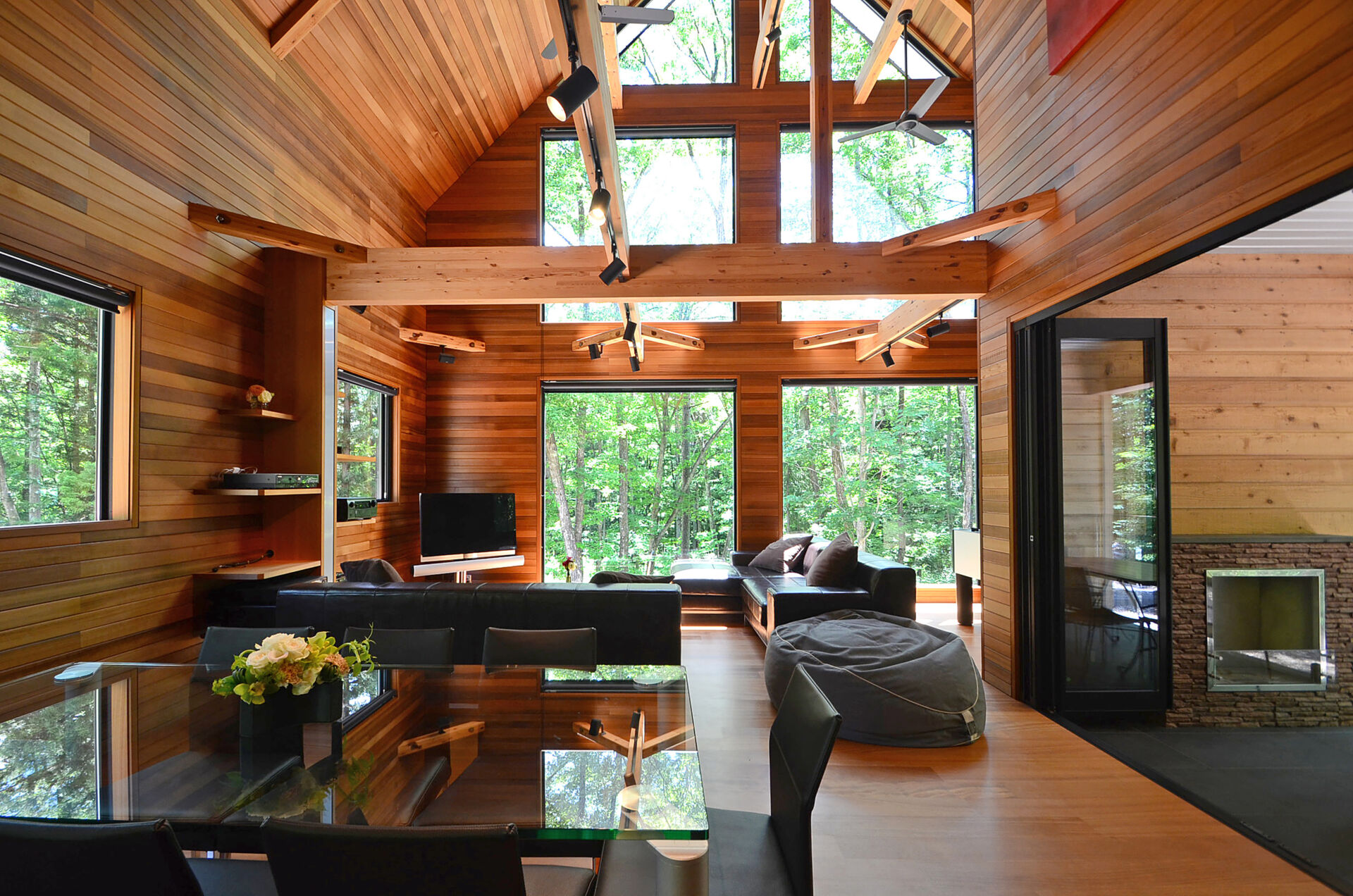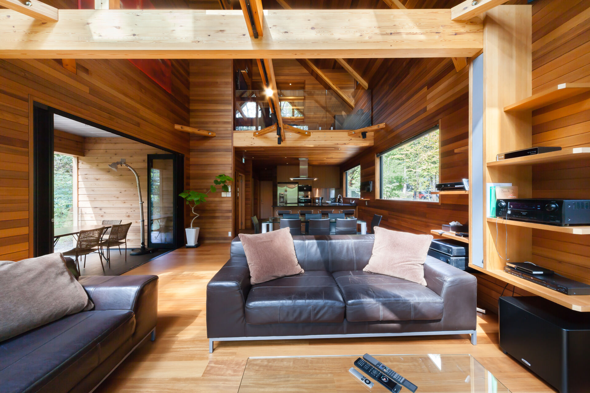 每个木屋都提供了一个独立的空间,包括卧室、设备齐全的厨房、餐厅和生活区,以及放置滑雪和滑雪板装备的干衣间。