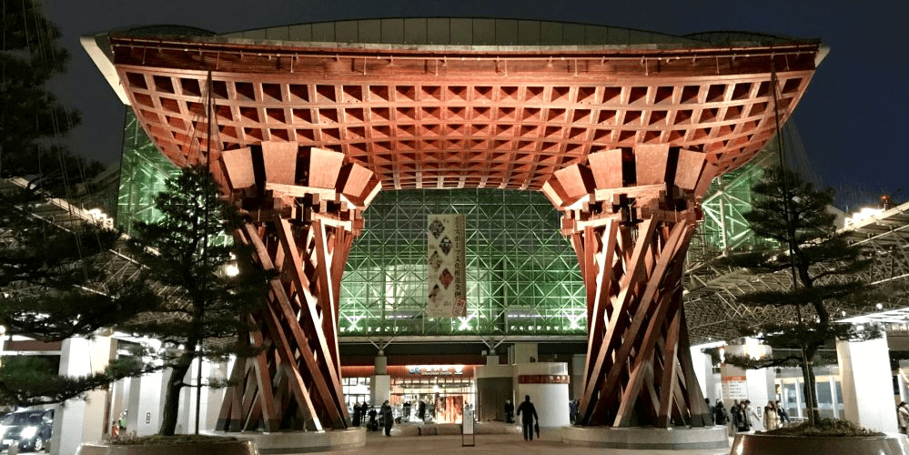 鼓门建于2015年,为庆祝北陆新干线金泽支线开通而建。其设计巧妙地融合了传统鸟居、当地艺伎文化和现代建筑风格。