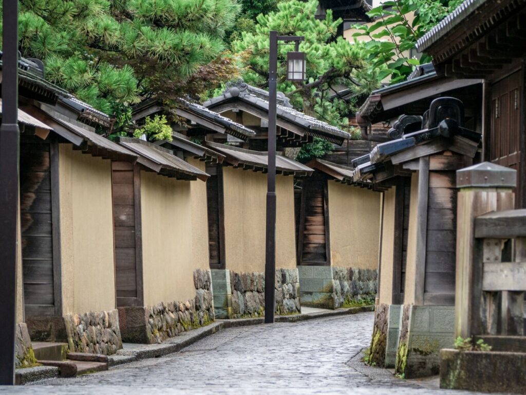 长町武士区曾是金泽一些最富有武士的聚居地。400年来,这片区域保存完好,保留着传统的城墙、鹅卵石街道和城墙上方生长的百年古树,为游客提供了充足的拍照机会。