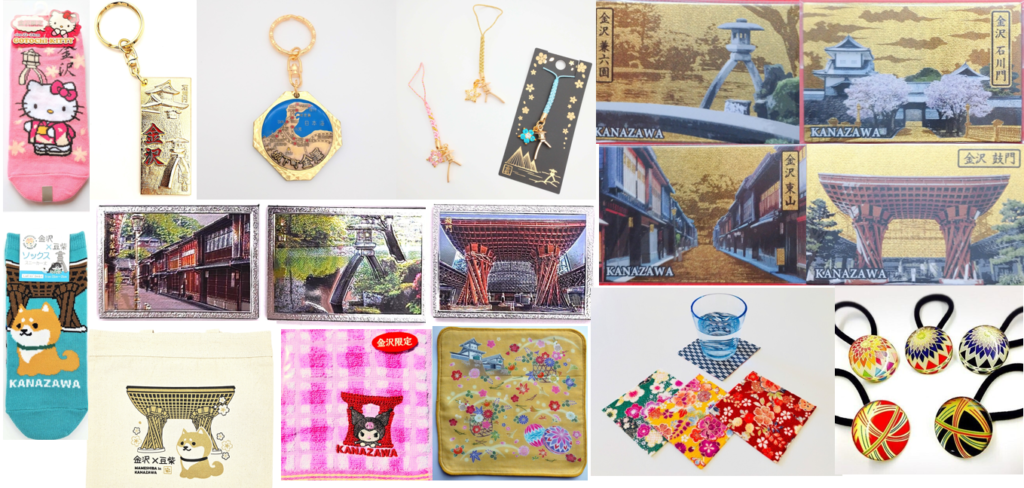 如果你想买一些更传统的“旅游”纪念品,比如冰箱贴、钥匙扣、毛巾等等,城里有很多地方可以买到!其中大部分都与金泽城公园、兼六园、21世纪当代艺术博物馆以及金泽标志性的鼓门有关。