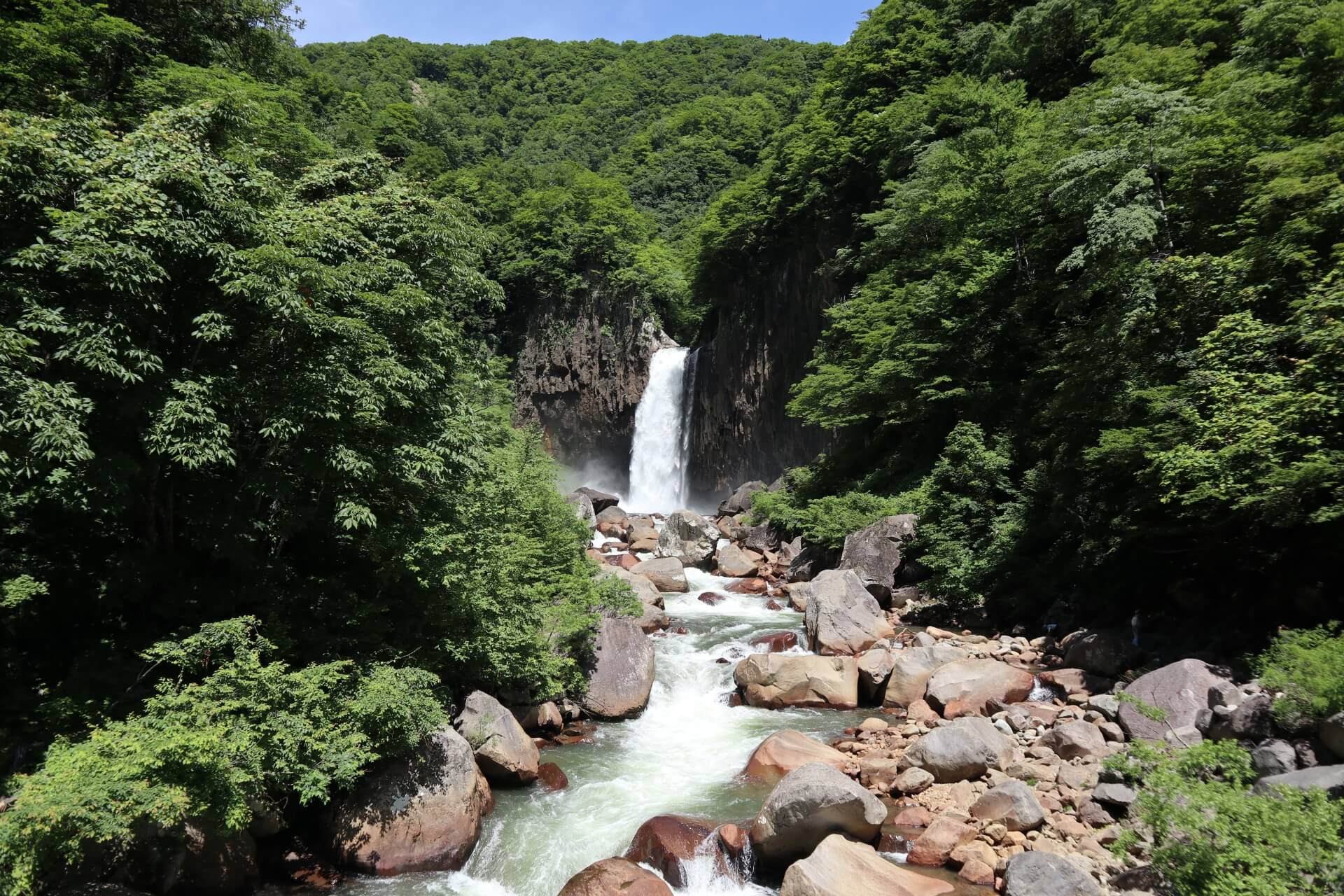 苗名滝距离赤仓温泉村只有20分钟的车程,一年四季都可以进入,但在夏季和秋季可能是最令人愉快的时候。这条55米高的瀑布被称为 "地震瀑布",因为瀑布发出的撞击声。春天雪融化时水量最大,9月下旬至10月,周围的森林在一年一度的秋叶中迸发出美丽的色彩,该地区尤其美丽。