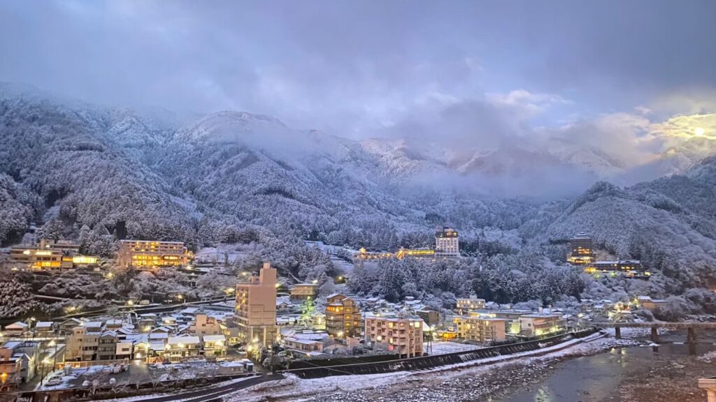 在寒冷的月份,下吕每年都会举办冬季烟火表演,为这个季节增添光彩。烟火表演在一月至三月的特定夜晚举行,点亮飞騨川的夜空,与皑皑白雪形成奇妙的对比。这是体验冬季下吕温泉的绝佳方式,也是游客在冬季的一大亮点。