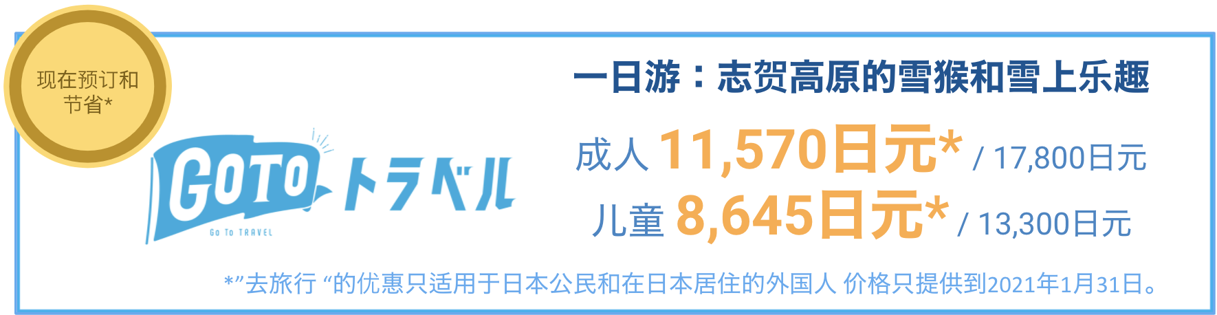 *请注意,由于天气条件和操作要求,旅游行程有时会被颠覆。这意味着上午参观猴子,然后是午餐和下午参观志贺高原。这并不常见,如果需要,旅游的整体内容保持不变,开始和结束时间也相同。