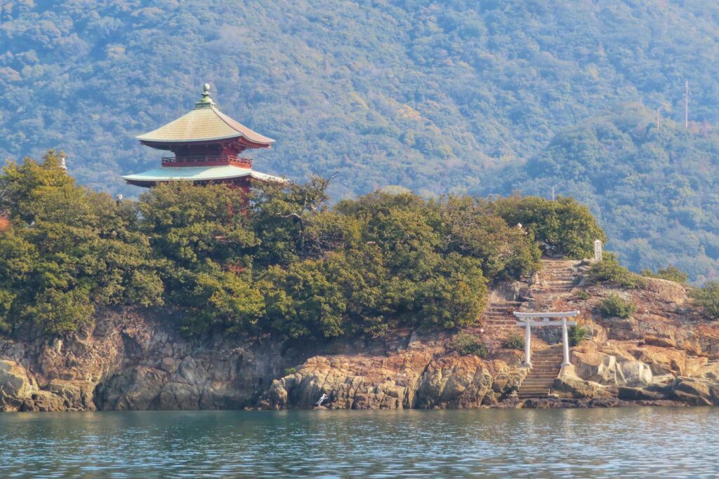最后,我们将乘坐渡轮前往附近的仙酔岛。从渡轮上,客人将能够看到迷人的弁天岛,这是一座位于鞆之浦和仙酔岛之间的荒岛,岛上有供奉弁财天的大厅和宝塔,弁财天被认为是日本渔民的守护神。虽然我们无法参观这座岛屿,但从海上看到的景色仍然令人惊叹。