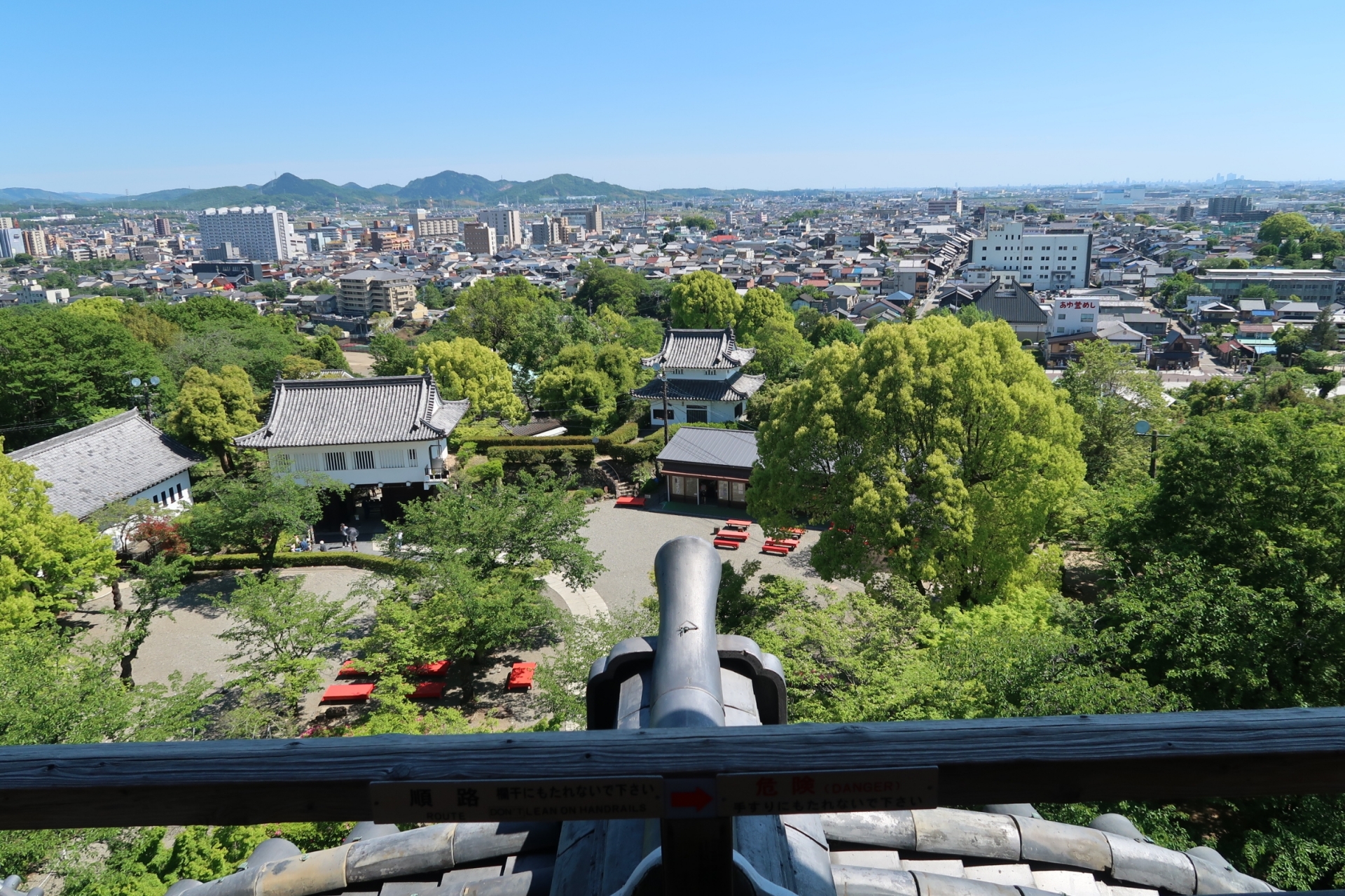 犬山城天守閣 天守閣共四層,採用獨創的技術和材料建造。其亮點是環繞頂層的觀景台,可以360度俯瞰木曾川、犬山老城區和遠山,實屬難得。
