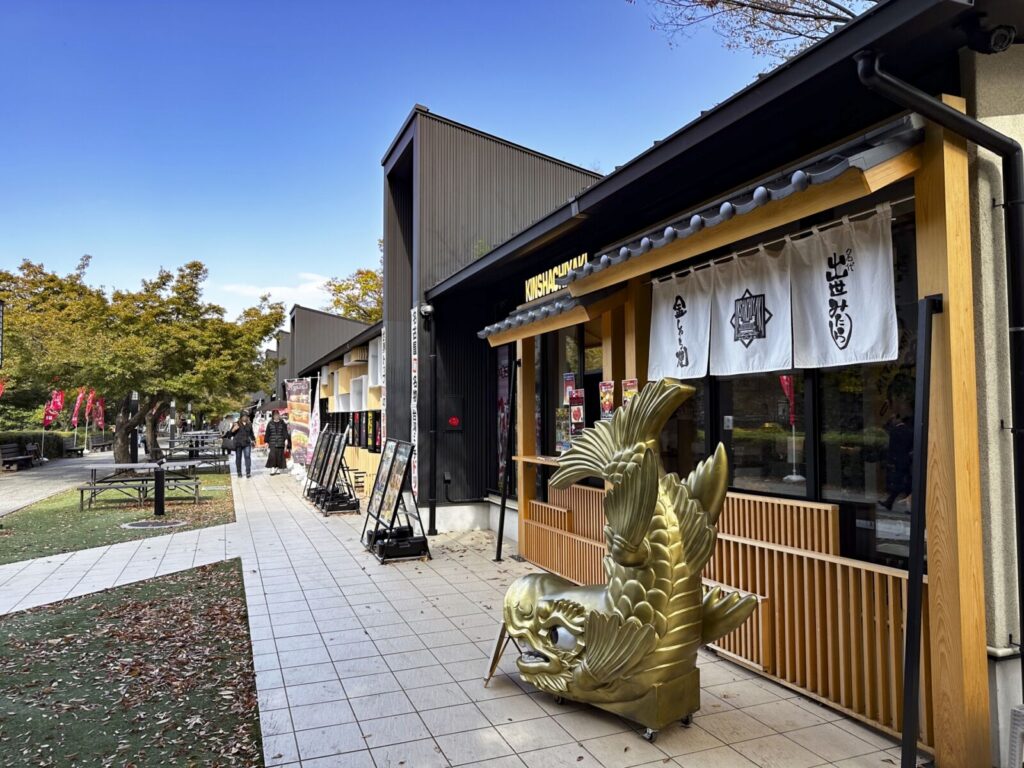 金鯱橫丁位於名古屋城正門外,是個熱鬧的餐飲區,匯聚了名古屋所有最著名的美食。金鯱橫丁由20家風格獨特的商店和餐廳組成,分為兩個主題區域,讓遊客既能品嚐到傳統風味,又能體驗到現代名古屋美食的創意。