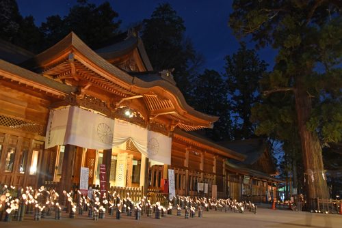 每年在寒冷的初冬,在美麗的穗高神社舉行安曇野神竹燈儀式。兩千多盞竹燈照亮了神社和周邊地區,彷彿是 “豊玉姫 “送給她的弟弟 “穗高見命 “的禮物。
