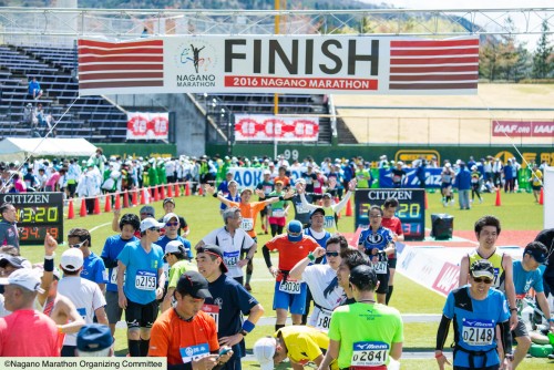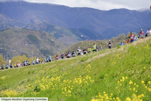 長野馬拉鬆在每年4月舉行,慶祝該城市和地區作為1998年冬季奧運會的主辦方,其使命是 "在與豐富的自然環境共存的同時,實現後代的夢想"。比賽的起點和終點都是奧運會期間的主辦場館,沿途經過水翼,穿過市中心,進入長野市若裡多目的、M-WAVE、白環真島綜和運動體育館,最後在城市南端的前奧林匹克體育場結束。