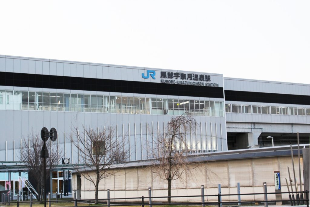 黑部宇奈月溫泉站是距離黑部峽谷最近的新幹線車站,因此是前往峽谷和鐵路的便利樞紐。該列車位於從敦賀和金澤開往東京的北陸新幹線,大約每小時有一班列車到達/離開黑部宇奈月溫泉站,停靠站為: