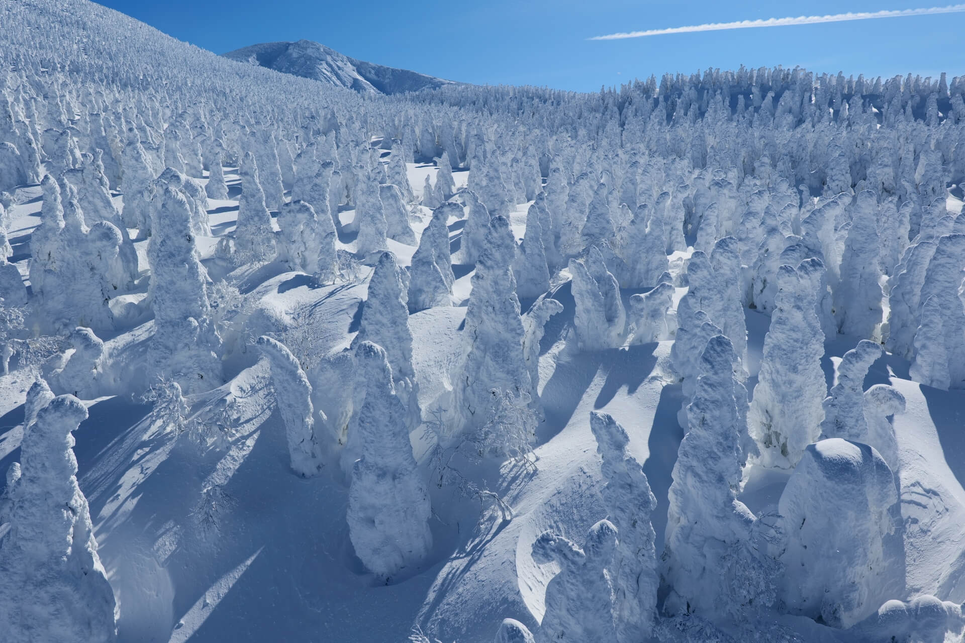 被稱為 "juhyo "的 "雪怪 "每年冬天出現在藏王溫泉滑雪場的頂部,吸引著來自世界各地的遊客。雪怪是由源自西伯利亞的冷空氣、冰和雪不斷吹襲形成的,這足以成為許多人前往藏王溫泉的理由。當你開始從長長的滑雪道下降時,你可以在樹木之間自由馳騁,其中最長的滑雪道綿延9至10公里,是日本最長的滑雪道之一。