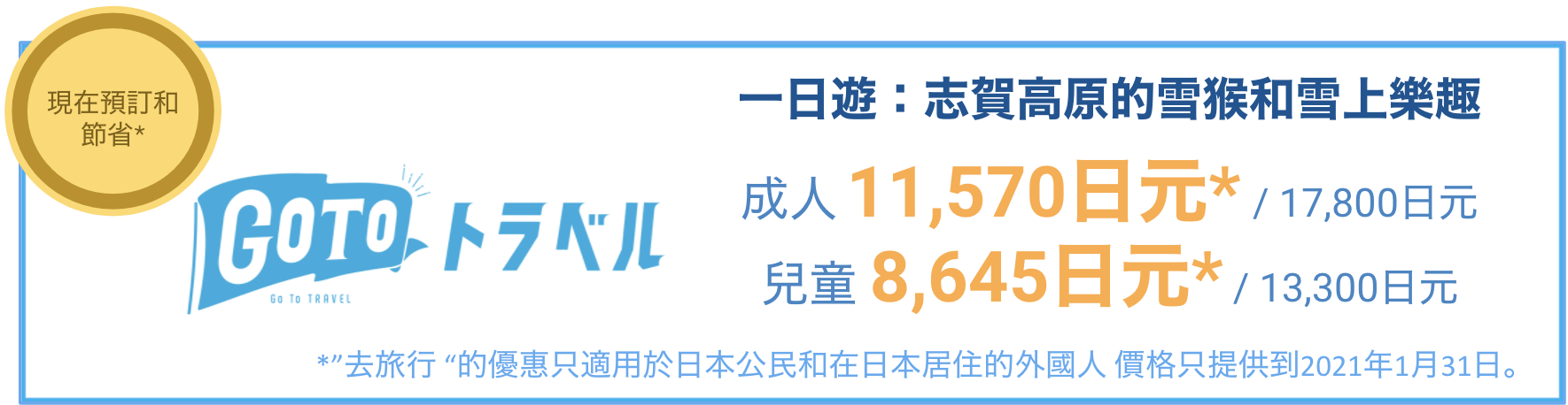 *請注意,由於天氣條件和操作要求,旅遊行程有時會被顛覆。這意味著上午參觀猴子,然後是午餐和下午參觀志賀高原。這並不常見,如果需要,旅遊的整體內容保持不變,開始和結束時間也相同。