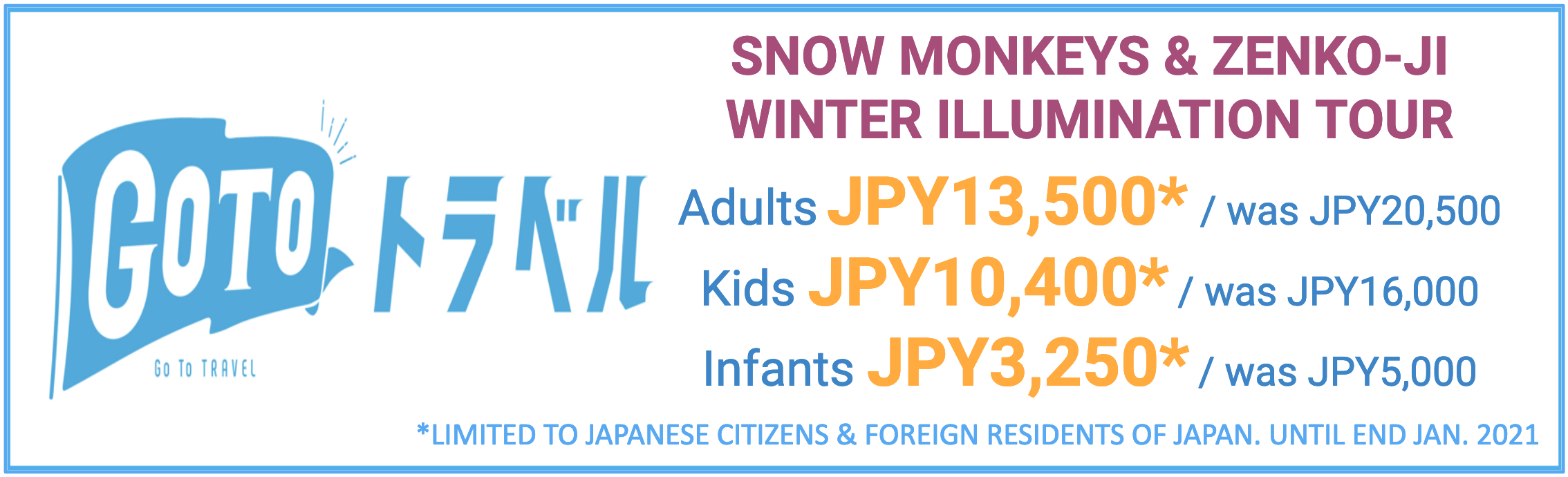 - 由於本次旅遊的受歡迎程度,我們將在12月15日到3月31日期間,提供冬季專用的往返於白馬八方巴士總站的班車服務。此服務不收取額外費用。如果您想從白馬出發,只需從日曆單中選擇該選項即可。如果您選擇這個選項,我們的工作人員會在白馬的集合點迎接您,並讓您乘坐前往JR長野站的班車。旅行團本身也是由JR長野站往返,大多數情況下,導遊會在該點加入和離開旅行團。
